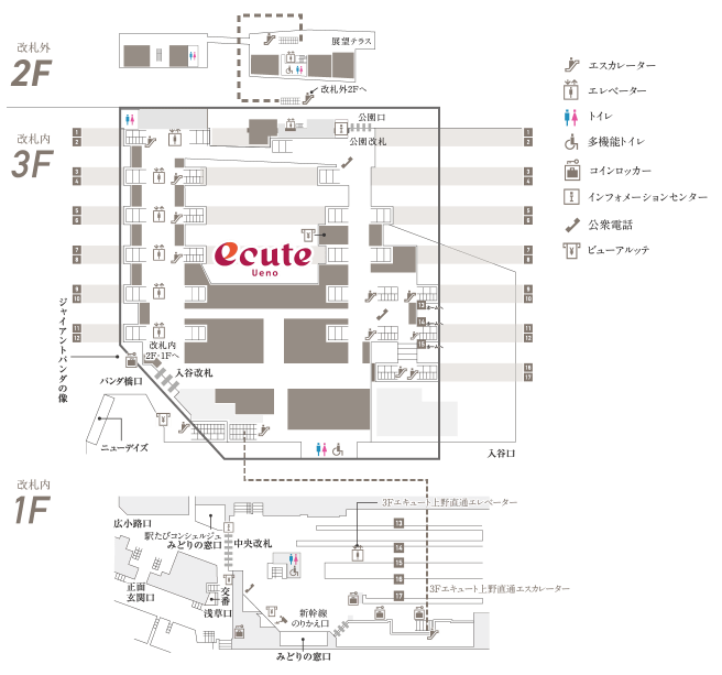 - 改札外=のもの/アトレ上野:寄り道ゾーン。ご当地セレクトやパンダ雑貨をプラス。