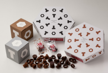 「これ何!?」と一目で目を引く、金属のネジ&ナット形のチョコレート。地元製鉄所の背景をもつ北九州らしいユーモアある一品。