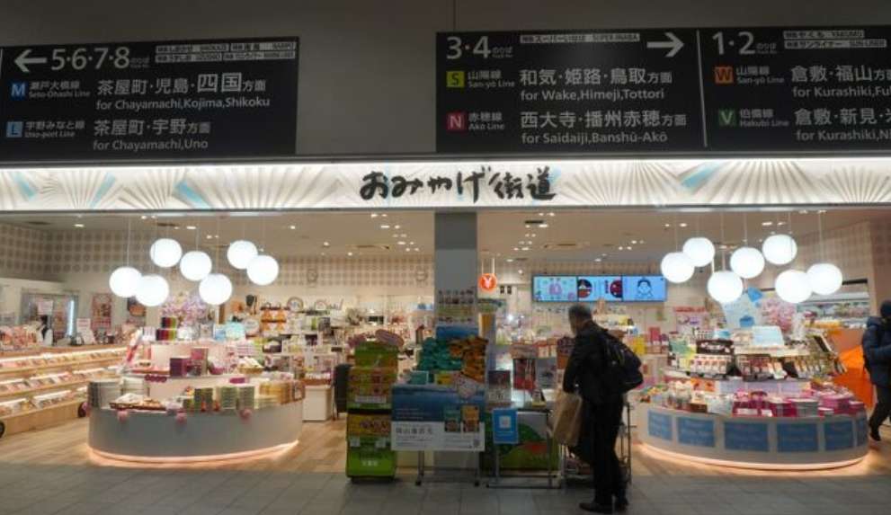 駅弁コーナーとお土産売り場が併設しており、駅弁だけでなく、岡山・瀬戸内エリアの土産品も並んでいます。
