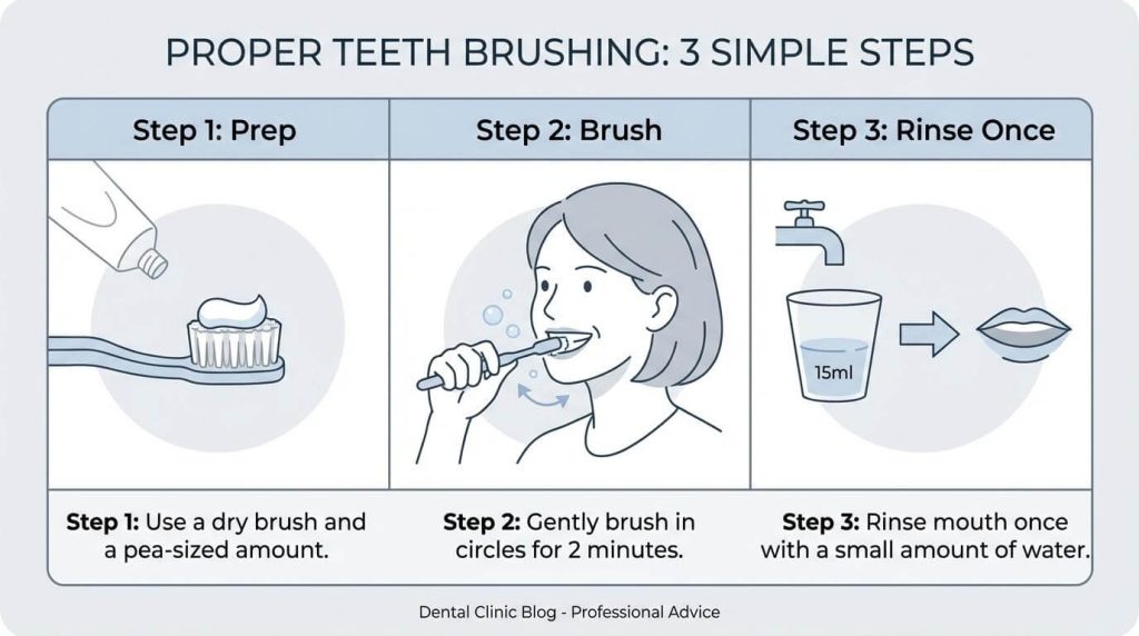 - 使用時は「乾いた歯ブラシ」と「少なめのうがい」で効果を最大化。