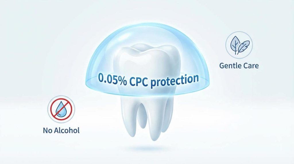 CPCは、ただ菌を殺すだけでなく、歯の表面をコーティングして菌を寄せ付けにくくするバリア効果も持っています。