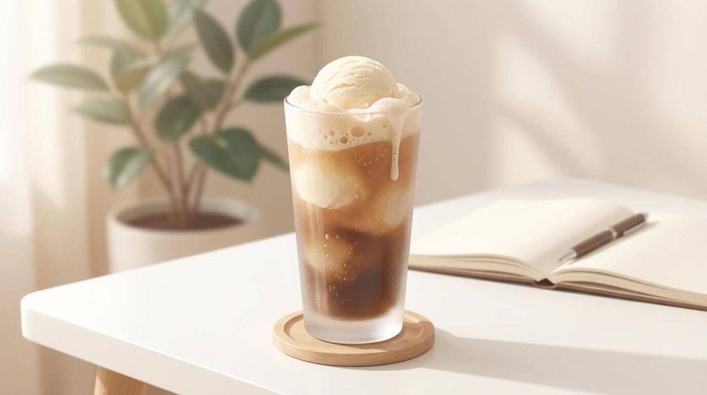 注いだ瞬間に、アイスクリームと炭酸が反応して生まれる、細かく濃密な茶褐色の泡。それが少しずつ縁を滑り落ちる様子を、ただ静かに眺める。そんな、一見すると非効率で贅沢な時間は、日々の喧騒で乾ききった私たちの感性を、しっとりと、深く耕してくれるはずです。