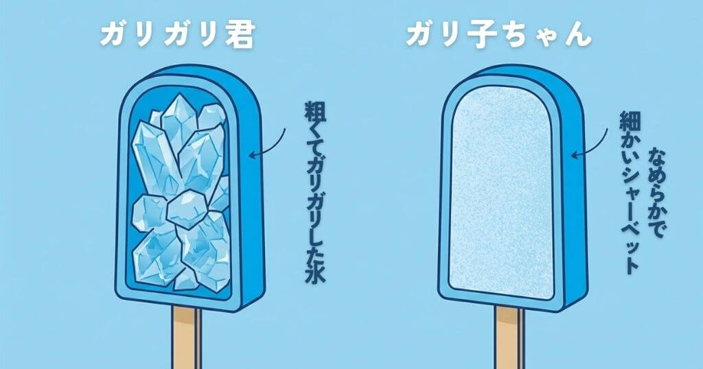 この食感の違いを専門的に説明すると、氷の粒子の大きさが違います。ガリ子ちゃんは、まるで絹のような、あるいは「やわらかい雪」を食べているような、うっとりするような口溶けが特徴です。