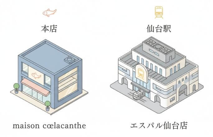 シーラカンス モナカは、仙台市内にある2つの店舗で購入できます。