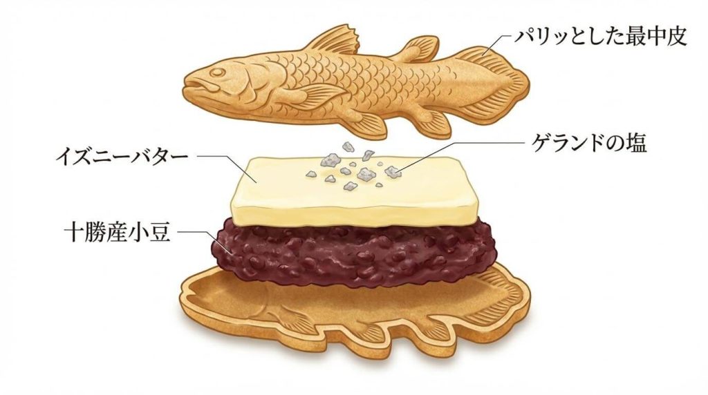 フランス・ブルターニュ地方の天然塩で、その強い塩気が、あんことバターの甘みを鮮やかに引き立てます。和のあんこと洋の素材が見事に融合した、まさに奇跡の味わいです。