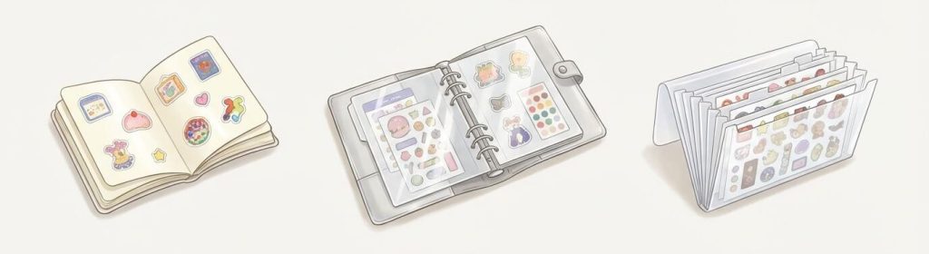 バラバラになったシールを整理するのにも役立ち、厚みも出にくいため、バッグに忍ばせてカフェなどで眺めるのにも適しています。