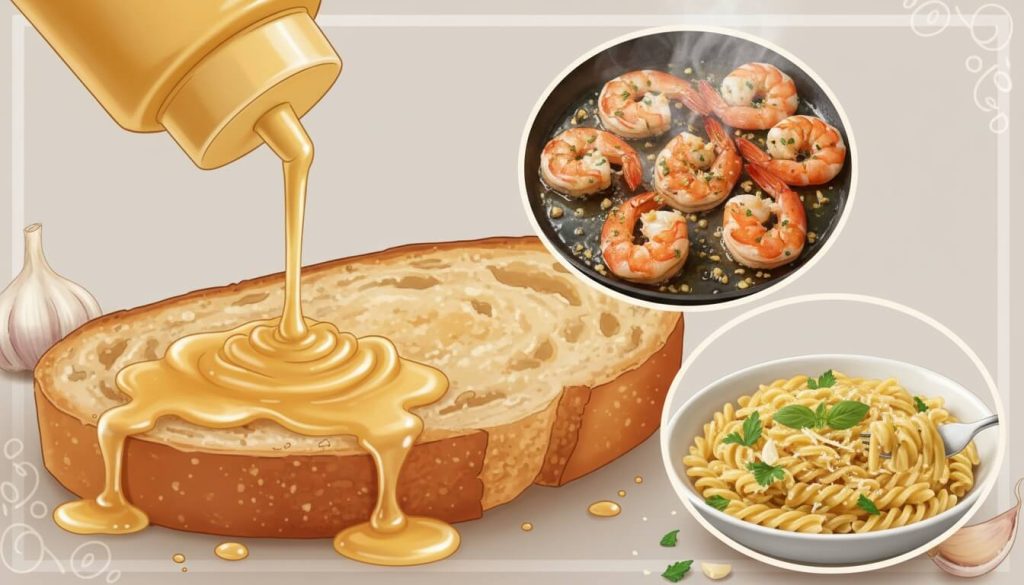 ガーリックトーストにした時、パンの奥までバターの旨味がじゅわ〜っと浸透するのは、液体ソースならではの魅力です。炒め物でも全体に素早く味が回るので、焦げ付く心配も少なくなります。