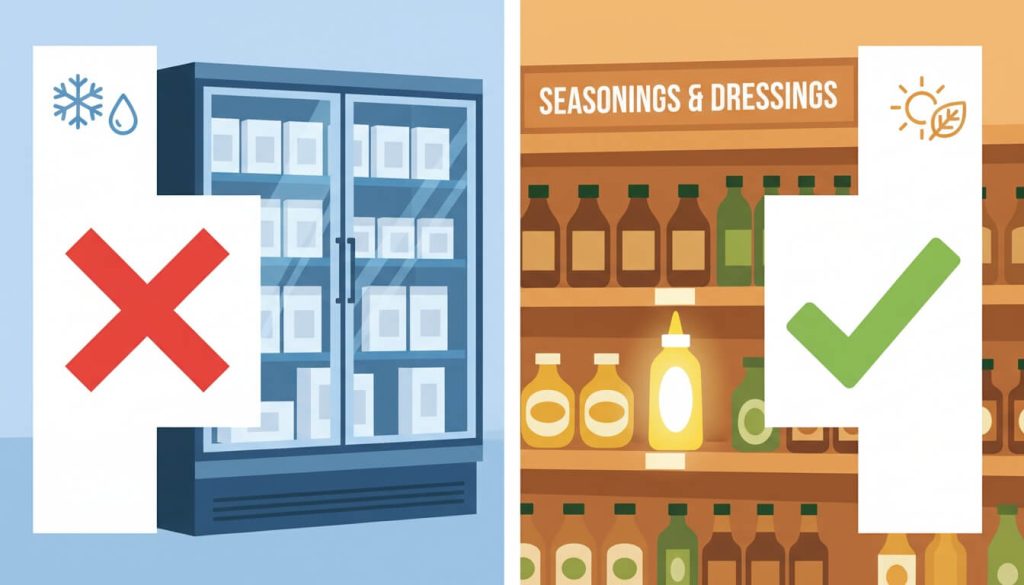 もしこれらを探して見つからなければ、迷わず店員さんにスマホで商品画像を見せて、「常温の調味料コーナーにありますか?」と聞いてみてください。