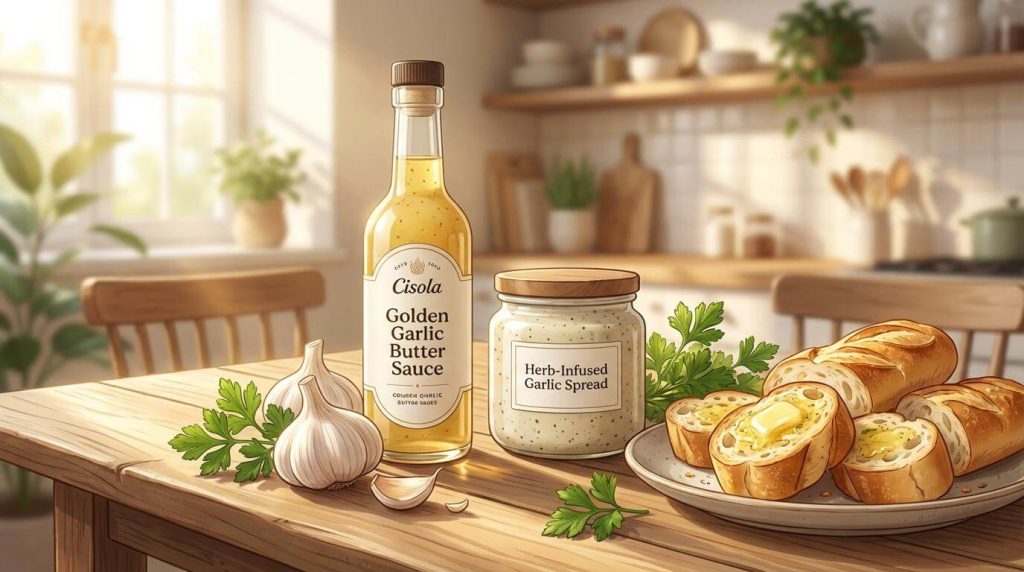朝の柔らかな陽射しの中で、パンがこんがりと焼き上がる心地よい音。そこに、ガーリックバターソースをたっぷりと塗ってみてください。オーブンの中で黄金色のソースが熱を帯び、パンの気泡にじゅわっと染み込みます。