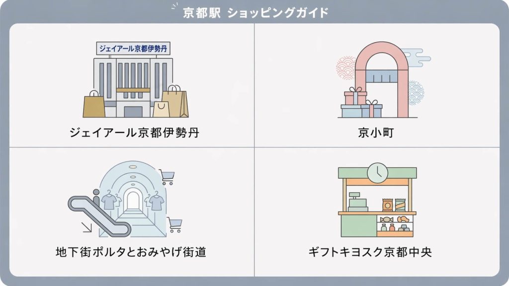 京都を離れる最後のチャンス。京都駅には、お土産を買える場所がいくつもあります。